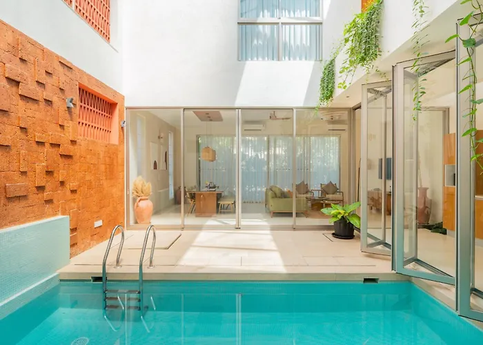 Die 3-Zimmer-Villa Elivaas Mirai Aries 3 Bhk Retreat With Private Pool Near Famous Beaches Vagator liegt 3 km von der St. Cajetan's Kirche und bietet Zugang zu verschiedenen Sehenswürdigkeiten in der Umgebung.